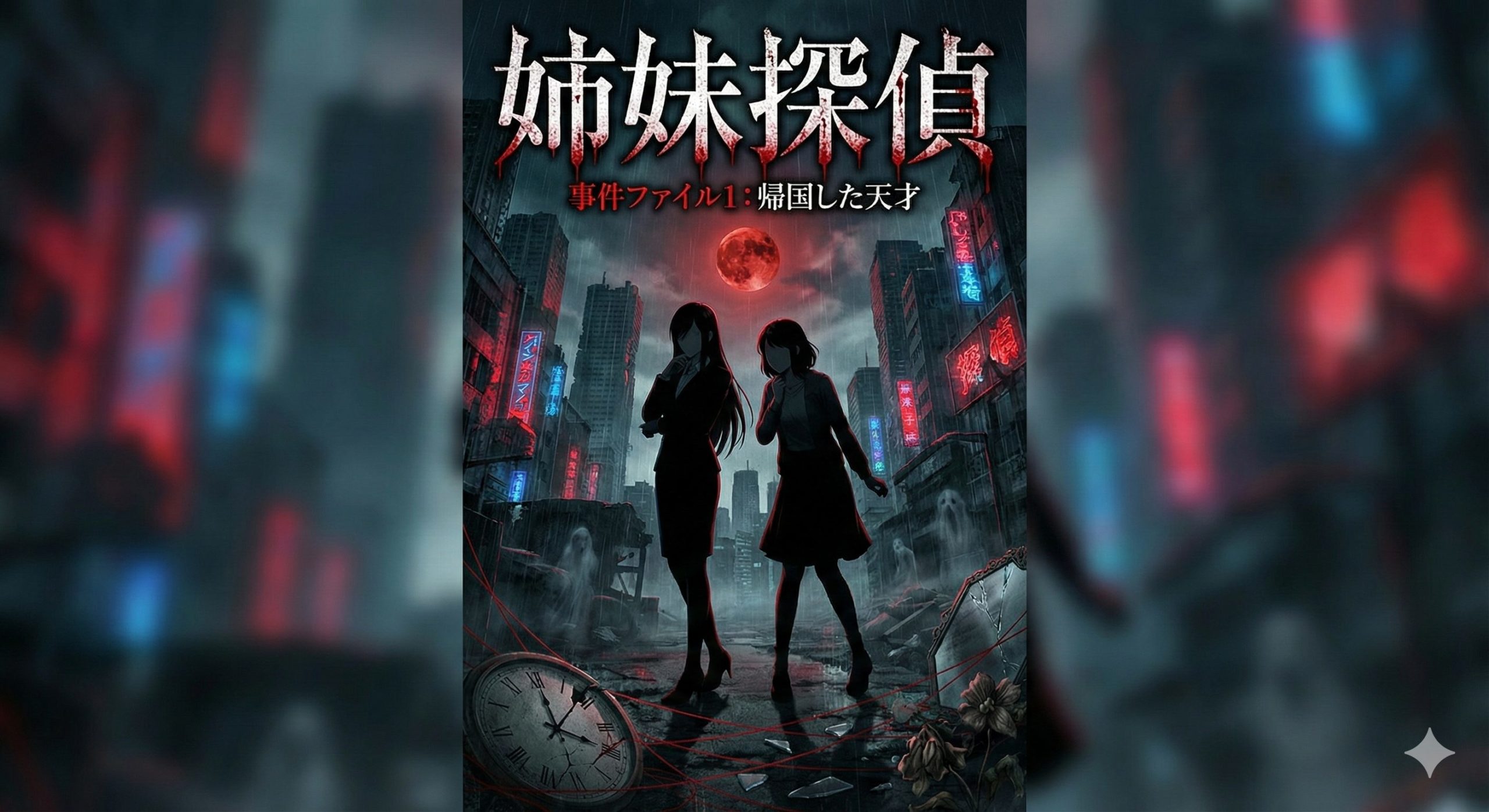 イメージ画像でも分かるかもしれませんが、タイトルに探偵と付けているのに、推理小説ではなくて、サスペンスホラーものになります。